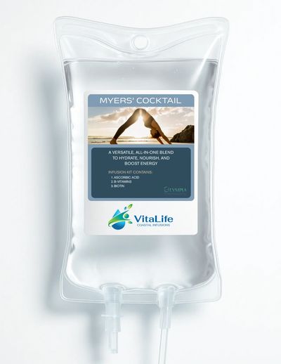A timeless IV therapy reimagined with a coastal-luxe touch, the Myers’ Cocktail Infusion supports whole-body wellness, energy, and immune health. Designed to replenish essential vitamins and minerals, this infusion helps combat fatigue, support muscle and nervous system function, and restore balance from the inside out. Whether you’re feeling run down or simply prioritizing proactive wellness, Myers’ Cocktail delivers comprehensive support with effortless coastal refinement.